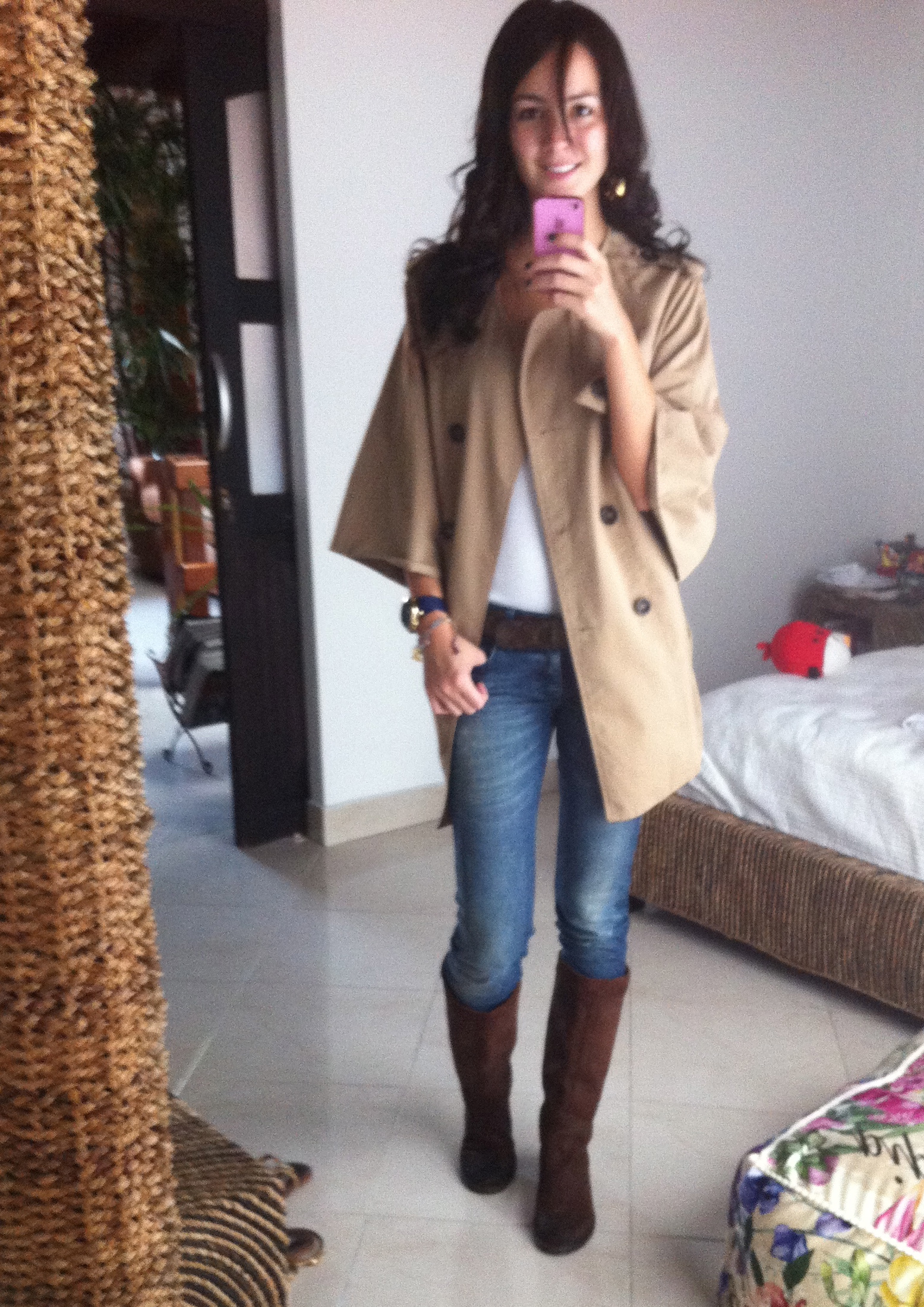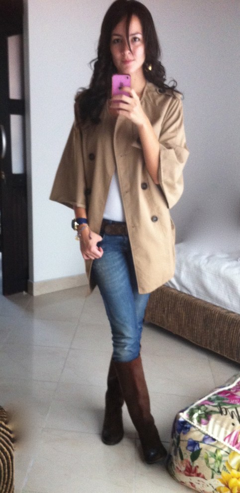 Unos jeans y un top blanco nunca fallan pero aproveche que no estaba haciendo mucho sol para usar una chaqueta inspirada en el «trench coat» y darle mas actitud a una pinta básica.