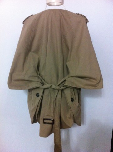 Un Trench Coat o Gabardina es una prenda icónica de la marca Burberry y fue diseñada para remplazar los abrigos pesados que usaban los soldados Británicos y Franceses en la Primera Guerra Mundial, las charreteras del hombro eran para que estos pusieran sus insignias y las argollas en D que tenían los pasadores era para colgar las granadas, la tela de la que esta hecha es de hilos tan tupidos que no permite el paso del agua o la humedad.
