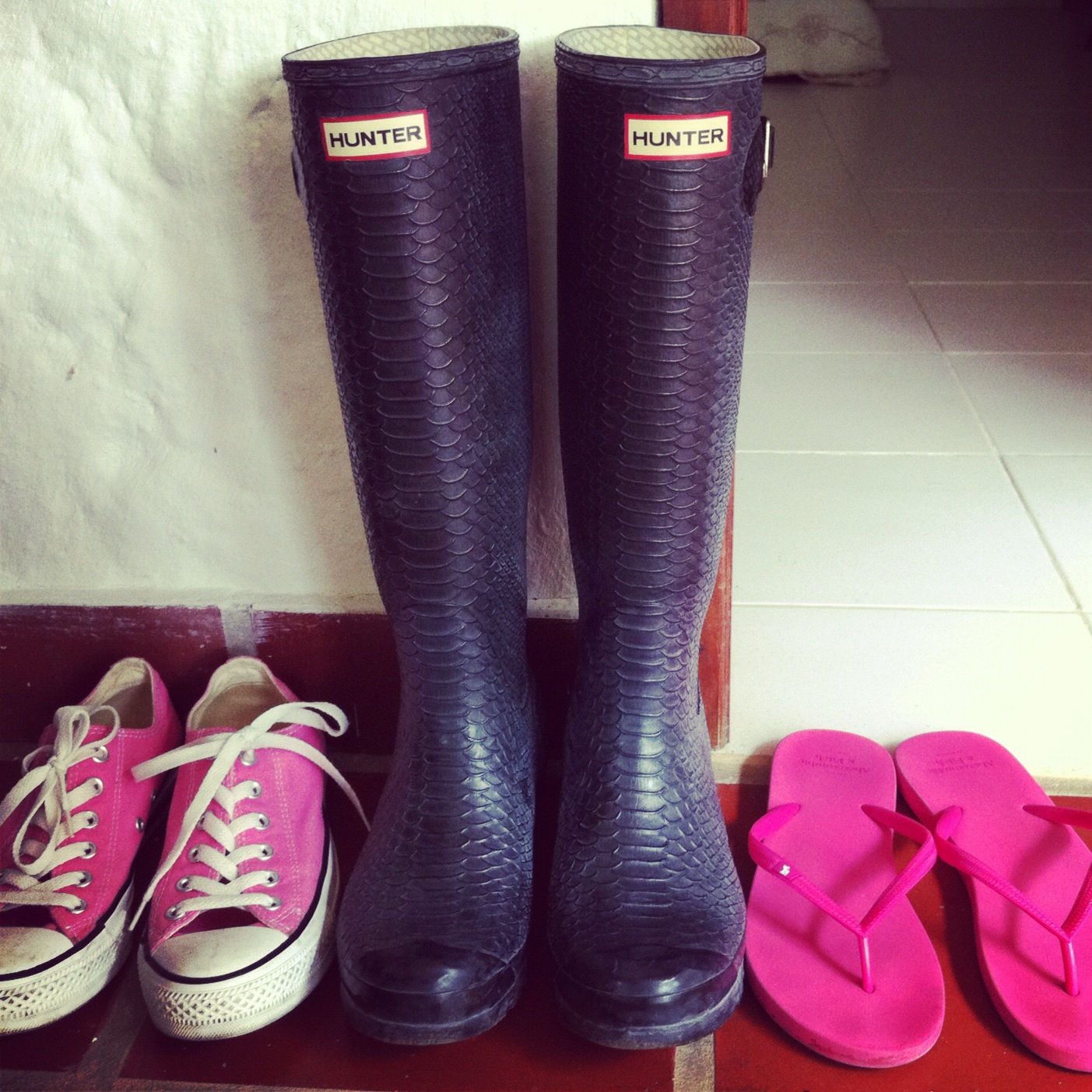 Los otros zapatos del fin de semana: Converse rosados, mis botas Hunter y mis chanclas de Abercrombie & Fitch